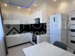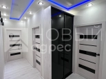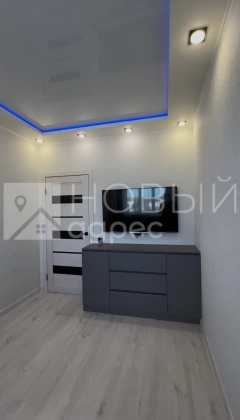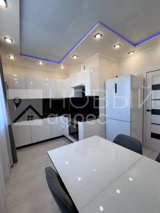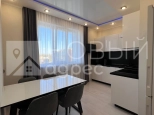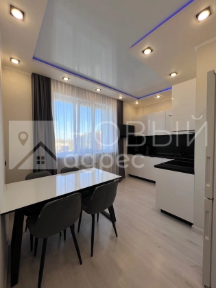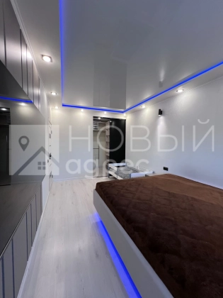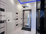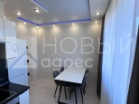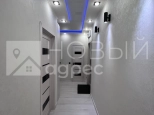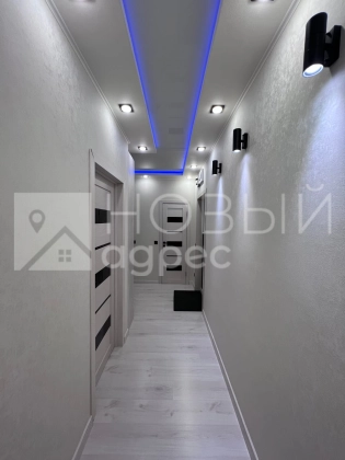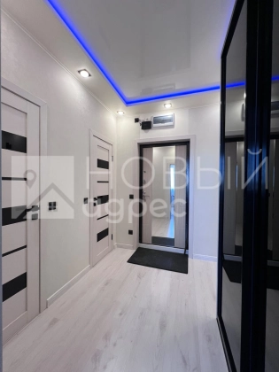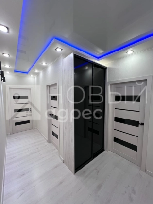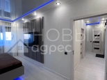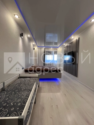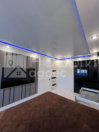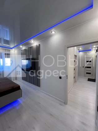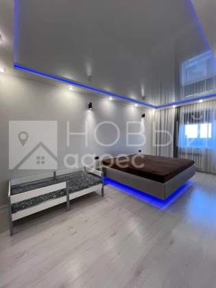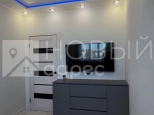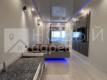 Ремонт: в квартире сделан качественный ремонт из дорогостоящих материалов, ровные и оклееные светлыми обоями стены, 2х-уровневые потолки с подсветкой во всех помещениях. Во всех комнатах двухкамерные металлопластиковые окна с тройным остеклением. В раздельном с/у  кафельная плитка. Пол во всех помещениях выложен ламинатом 33 класса.  Установлены дорогие полотна межкомнатных дверей белого цвета.