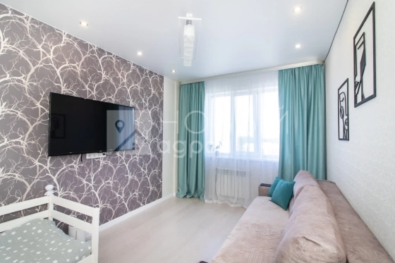 Ремонт: в квартире сделан качественный ремонт из дорогостоящих материалов, ровные и оклееные светлыми обоями стены, ровные потолки во всех комнатах. Во всех комнатах двухкамерные металлопластиковые окна с тройным остеклением. В раздельном с/у  кафельная плитка. Пол во всех помещениях выложен кварцвенилом.  Установлены дорогие полотна межкомнатных дверей белого цвета.