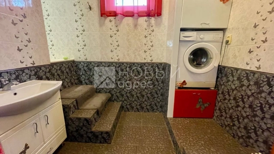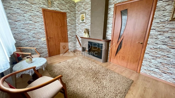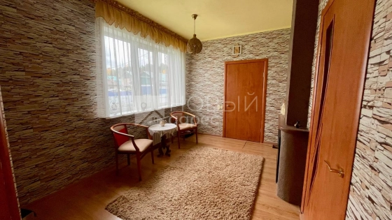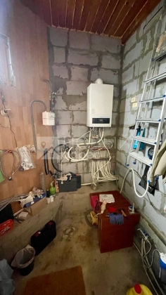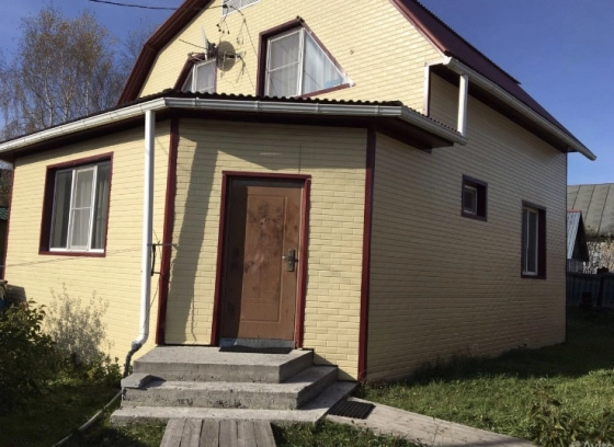 Дом стоит на ленточном фундаменте. Стены выложены из твинблока, утеплен 10 см пенопласта, облицовка из металосайдинга. Отопление газовое.