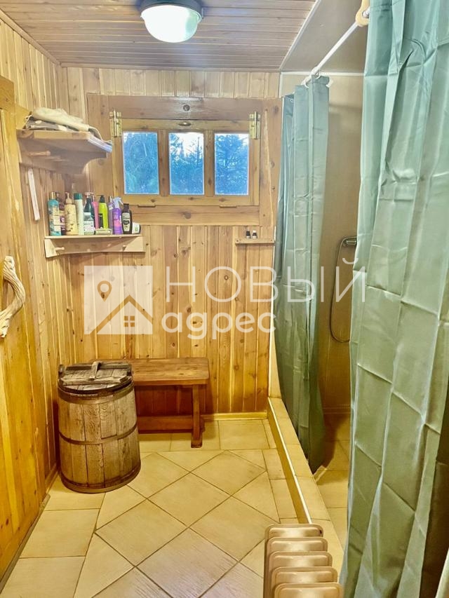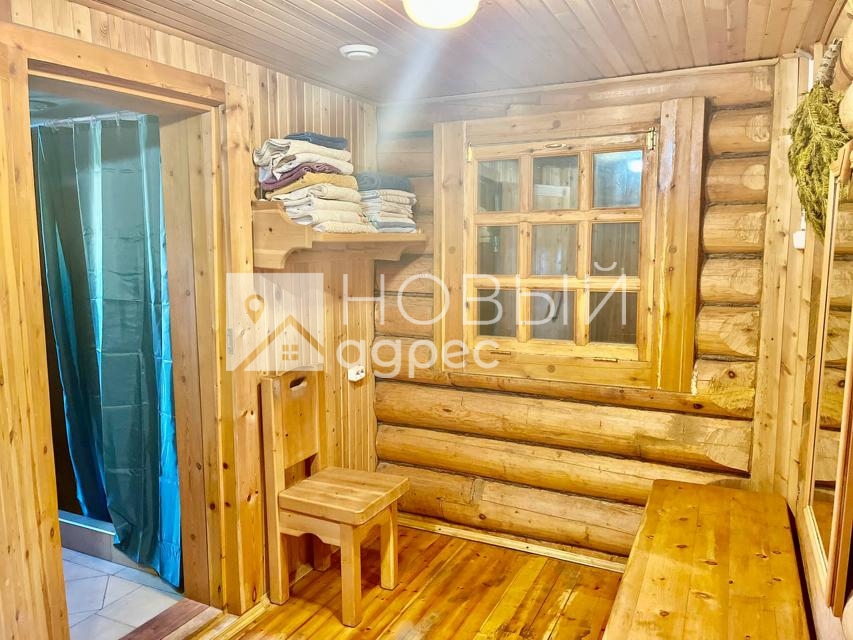 Баня 100 кв.м. где есть сауна, душевая, раздевалка и комната отдыха.
