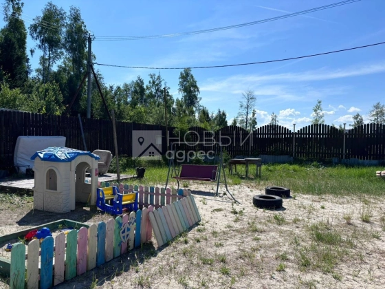 Участок правильной формы, огорожен забором из дерева. На участке располагаются кустарники, грядки. Сделана детская площадка для малышей. Также имеется туалет на улице, сарай, курятник.