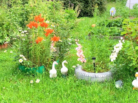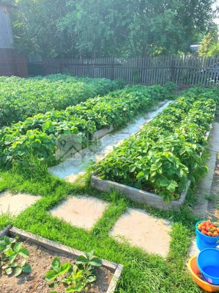 - Из насаждений: клубника, калина, ирга, жимолость, смородина черная и красная. Сажают картофель.