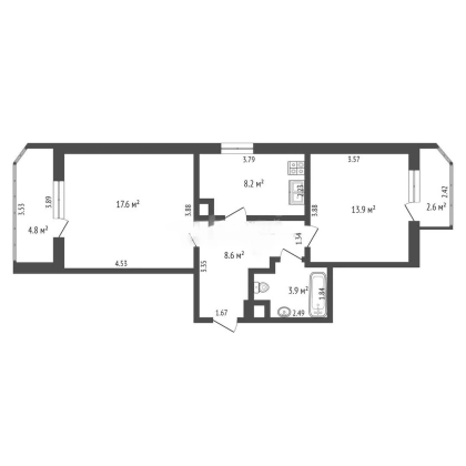 Продается 2-х комн. квартира, 52.2 кв.м., 10/12 эт