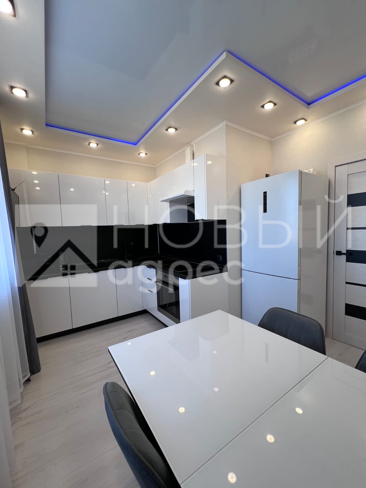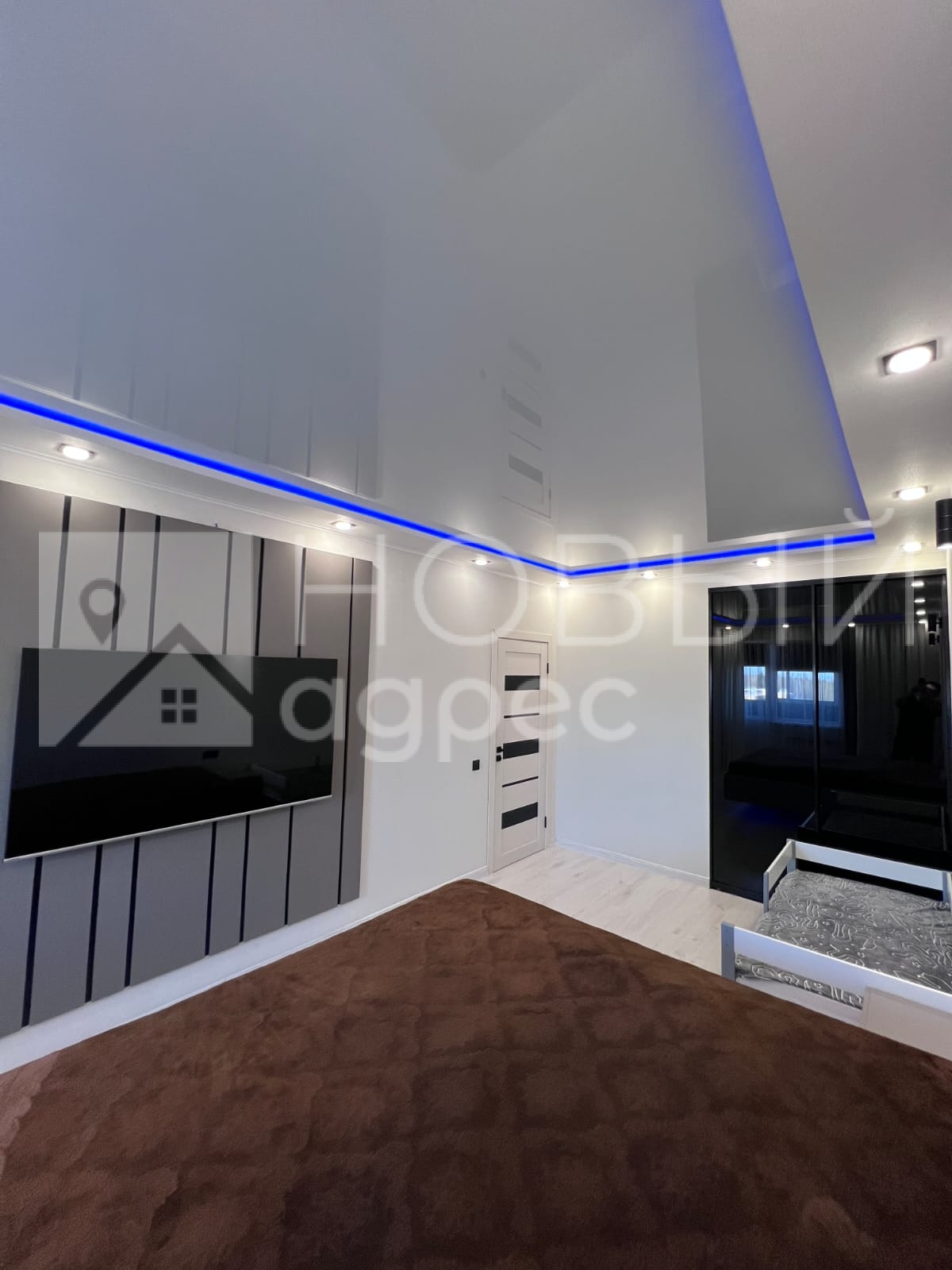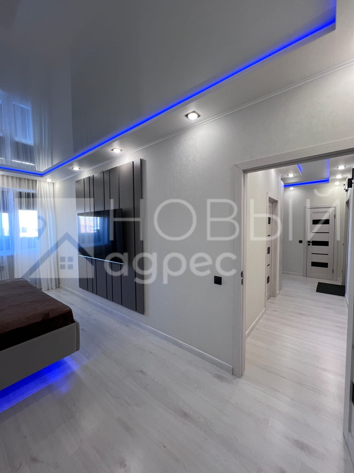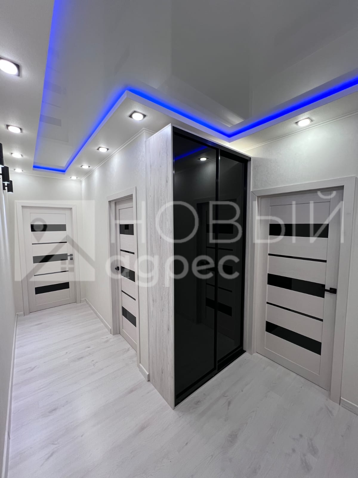 Ремонт: в квартире сделан качественный ремонт из дорогостоящих материалов, ровные и оклееные светлыми обоями стены, 2х-уровневые потолки с подсветкой во всех помещениях. Во всех комнатах двухкамерные металлопластиковые окна с тройным остеклением. В раздельном с/у кафельная плитка. Пол во всех помещениях выложен ламинатом 33 класса. Установлены дорогие полотна межкомнатных дверей белого цвета.
