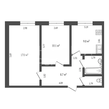Планировка: просторная 2-комнатная квартира комфортной планировки, общей площадью 46,5 м². Планировка квартиры продумана до мелочей для Вашего комфортного проживания в ней, она включает в себя: просторную кухню, где вся семья будет проводить свободное время вместе; просторная комнаты; высота потолков 2,73 м; совмещенный санузел с душевой кабиной; лоджия. Окна в квартире выходят во двор.