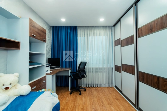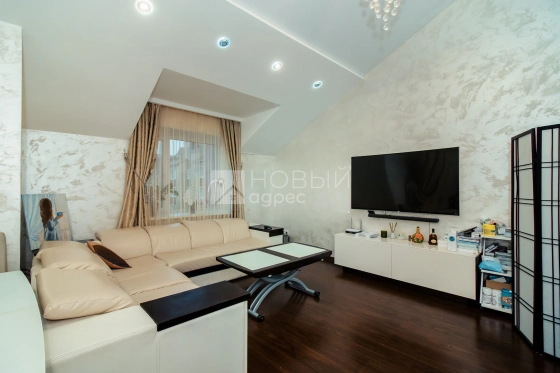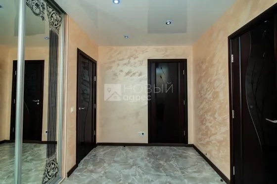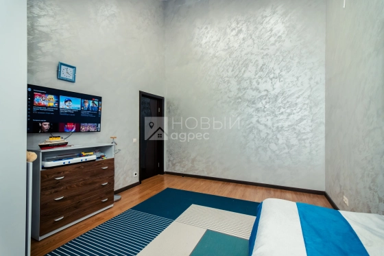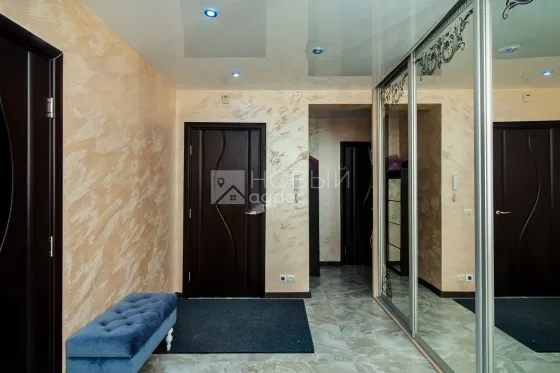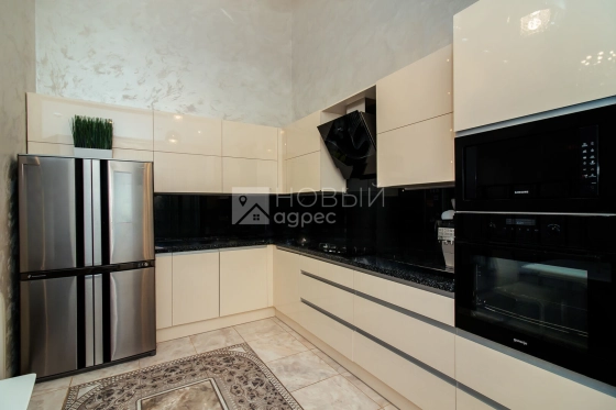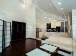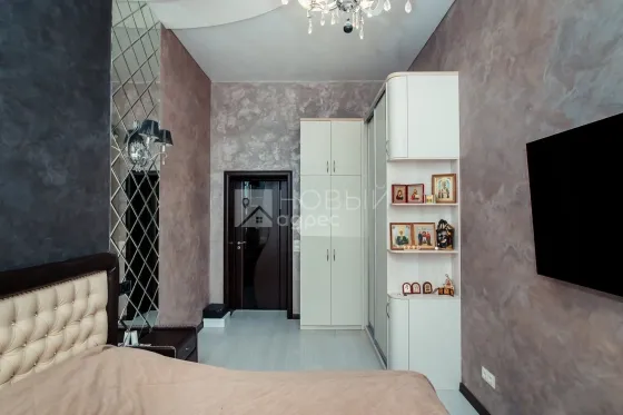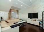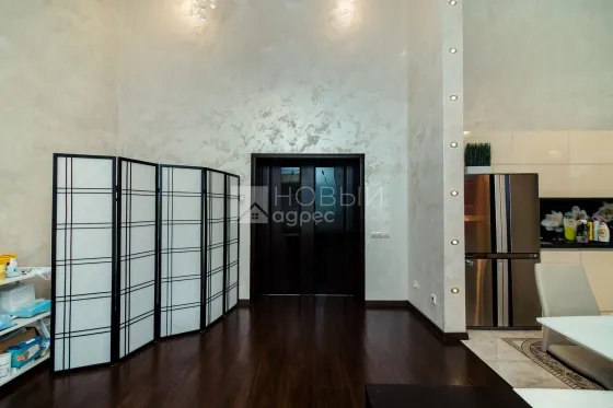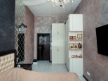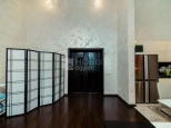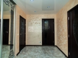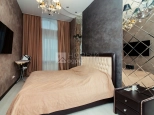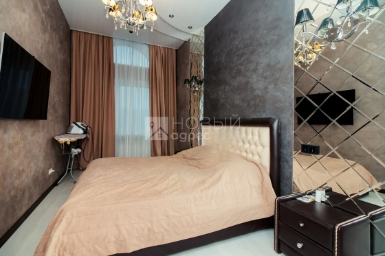 Ремонт: выполнен качественный дизайнерский ремонт из дорогостоящих материалов по дизайн-проекту в стиле нео-классика. В интерьере максимально применялись светлые тона, декоративная штукатурка практически во всех помещениях. В спальне дизайнер использовал коричневые и телесные оттенки штукатурки и разбавил зеркальными вставками для расширения пространства. Установлены дорогие полотна межкомнатных дверей. Также наличие разноуровневых потолков с перепадами высоты обыграны световыми эффектами при помощи светодиодных светильников, бра, люстр и остальными осветительными приборами, которые можно рационально распределять в разное время суток, а также в зависимости от настроения.