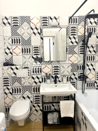 В квартире выполнен евроремонт. Каждая деталь подобрана со вкусом и подчеркивает индивидуальный стиль данной квартиры. Пространство грамотно зонировано и для всего есть свое место не уменьшая жилое пространство. Вся мебель техника остается новым владельцам. Просторный сан. узел в котором уместилась стиральная машина и ванная.