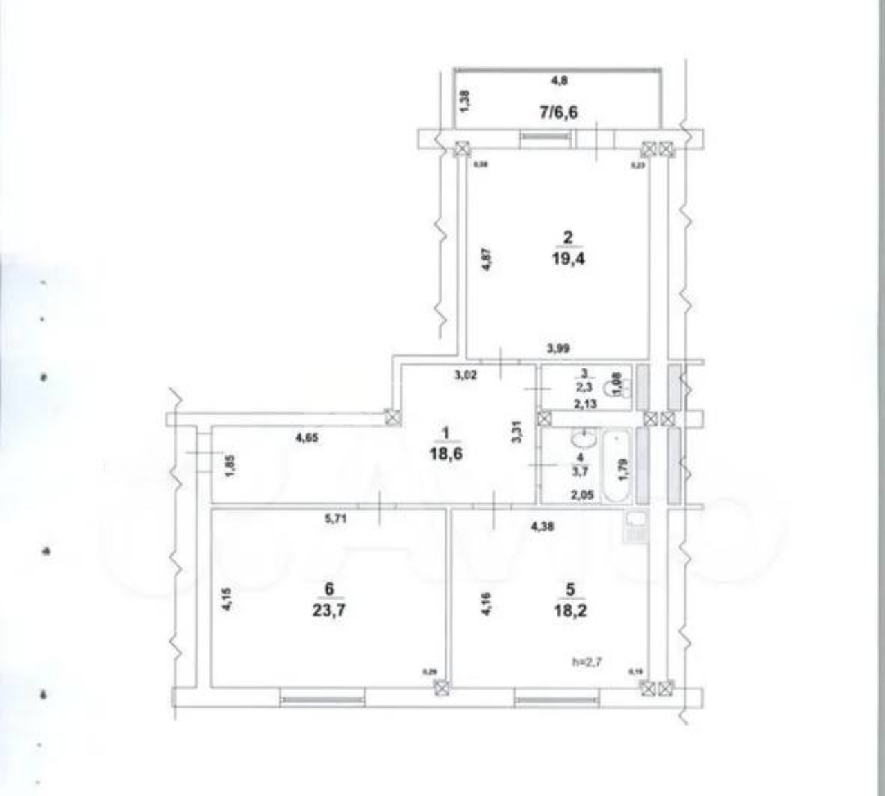 Продается 2-х комн. квартира, 85.9 кв.м., 5/5 эт