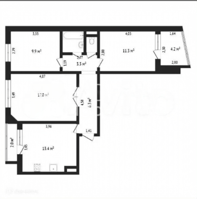 Очень комфортная планировка, все помещения правильной формы. Окна выходят на улицу и во двор (распашонка), в квартире всегда светло. Просторная кухня-гостиная 13,4 кв.м. с выходом на балкон может стать отличным местом для встречи с гостями и родственниками, а также для вечернего времяпровождения со своей семьей. Также 3 уютные, светлые комнаты, одна из которых с выходом на балкон. Раздельный санузел.
