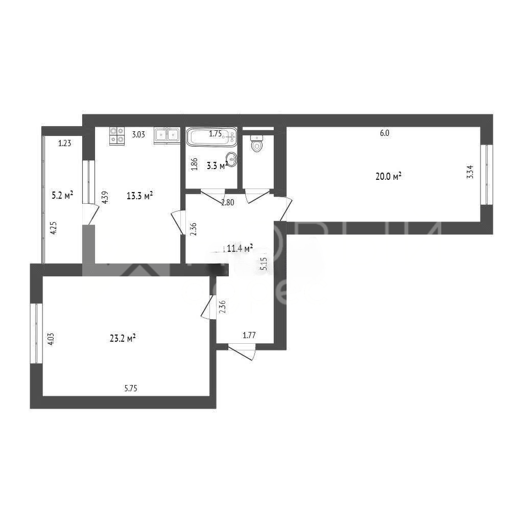 Очень комфортная планировка, все помещения правильной формы. Окна выходят на улицу и во двор (распашонка), в квартире всегда светло. Просторная кухня-гостиная 13,3 кв.м. с входом на балкон может стать отличным местом для встречи с гостями и родственниками, а также для вечернего времяпровождения со своей семьей. Также 2 уютные, светлые комнаты по 23,2 кв.м. и 20 кв.м. Раздельный санузел.