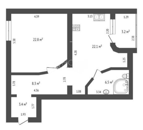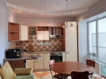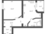 Планировка: Очень комфортная планировка, все помещения правильной формы. Широкая входная зона. Просторная квартира с кухнй-гостиной 22 кв.м, имеется выход на балкон 3,2 кв.м.. Светлая спальня 22 кв.м. Вся мебель и техника под заказ их Европы. Совмещенный санузел имеет большую угловую ванну. Окна выходят на две стороны дома (распашонка), что обеспечит комфортные условия в жаркую погоду.
