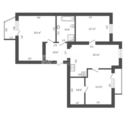 Продается 3-х комн. квартира, 85.9 кв.м., 4/4 эт
