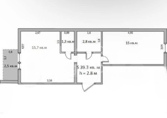 Общая площадь: 39,3 кв.м.+ балкон 2.5 кв.м.