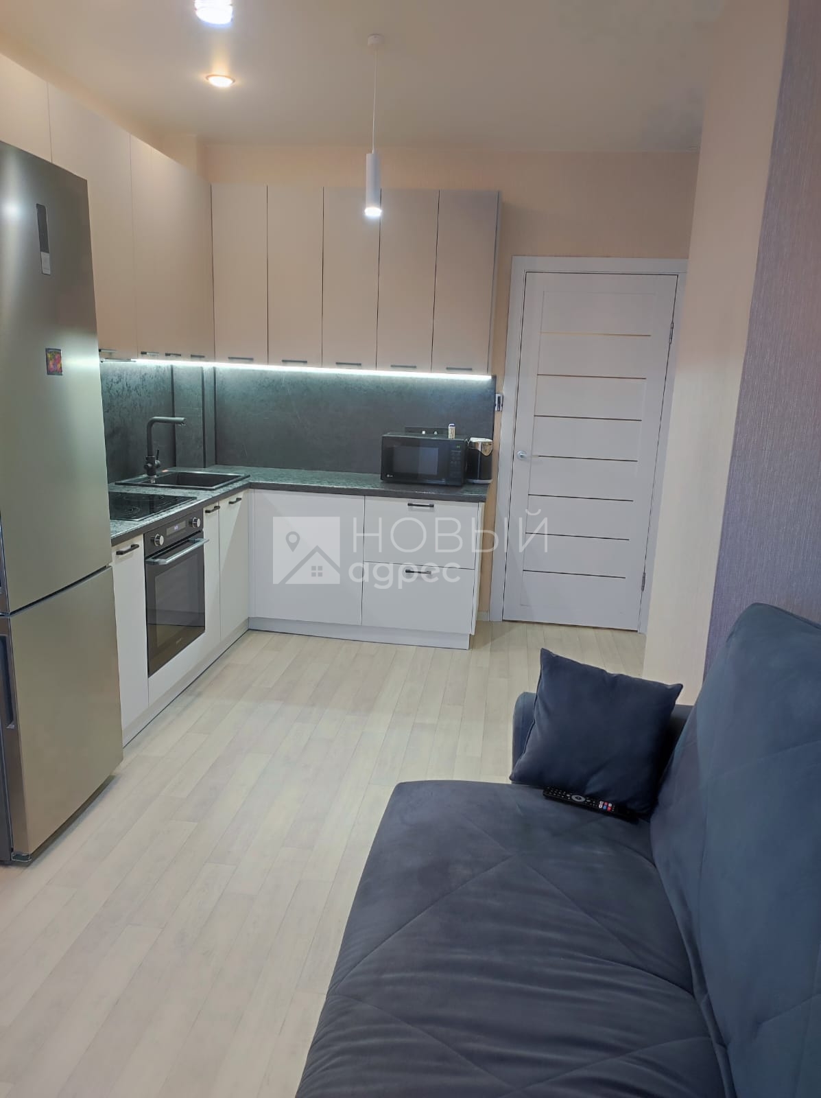В квартире имеется все необходимое для комфортного проживания: кухонный гарнитур с бытовой техникой, стал, диван, вместительный шкаф, диван в спальне, кровать, стиральная машинка и много другое.