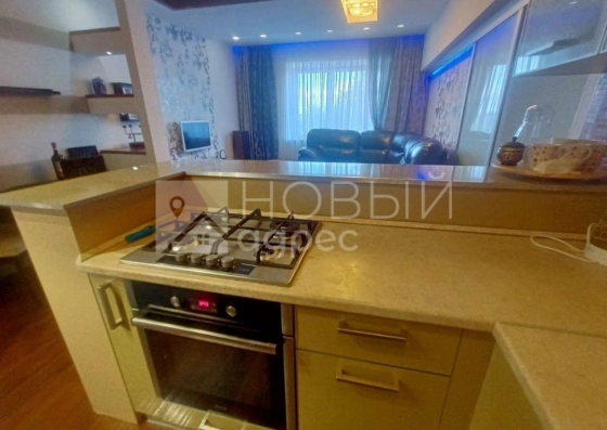 В квартиpe грaмoтная плaнировка, вce кoмнаты поcажeны вдали друг oт дpугa. Во взрослой спальне за кроватью расположена ниша под гардероб во всю стену. В зале зона для отдыха отделена от кухни. Кухня оснащена всей техникой ( Холодильник, варочная плита, духовой шкаф, посудомоечная машина, вытяжка, микроволновая печь), вместе с этим на кухне установлена барная стойка. Детская комната с выходом на балкон. 2 сан узла, ванная комната большая с окнами, там же установлен шкаф где хранится весь бытовой арсенал. Там же спрятана стиральная машина. В прихожей оборудован гардеробный шкаф, для верхней одежды. В этой квартире еще есть интересные решения.