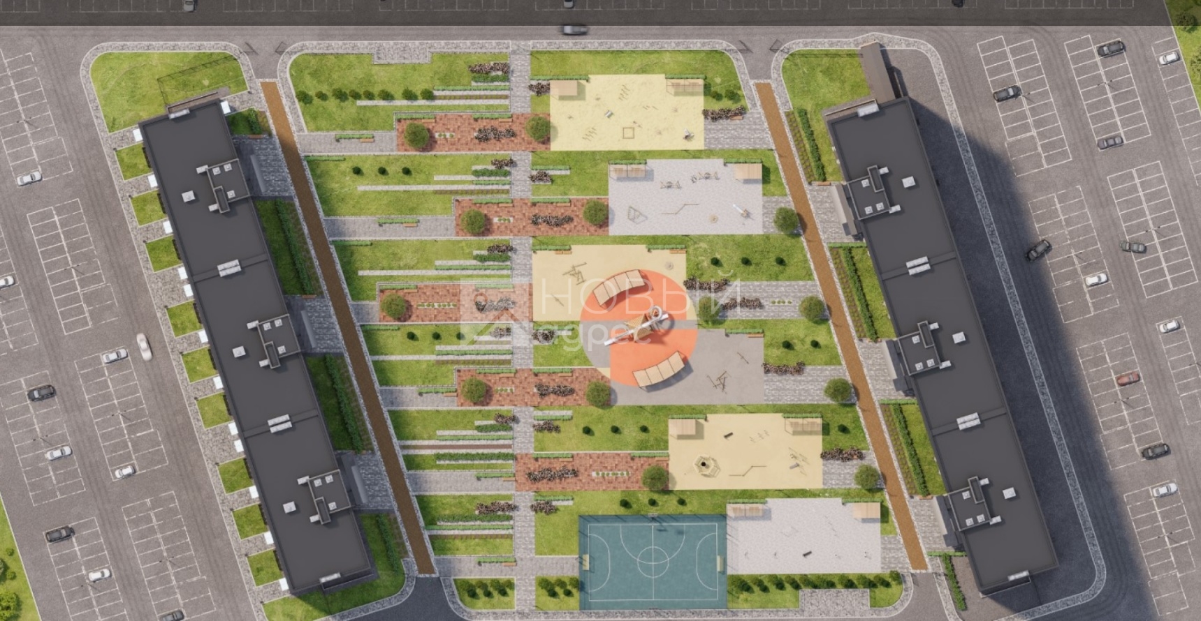 Двор закрытая территорияХантыйский чум - визитная карточка двораСпортивная площадкаСовременная площадка с безопасным резиновым покрытием Открытая парковка В шаговой доступности:Район с удобной транспортной развязкой