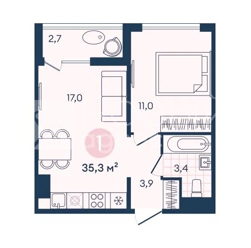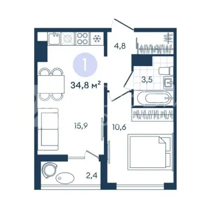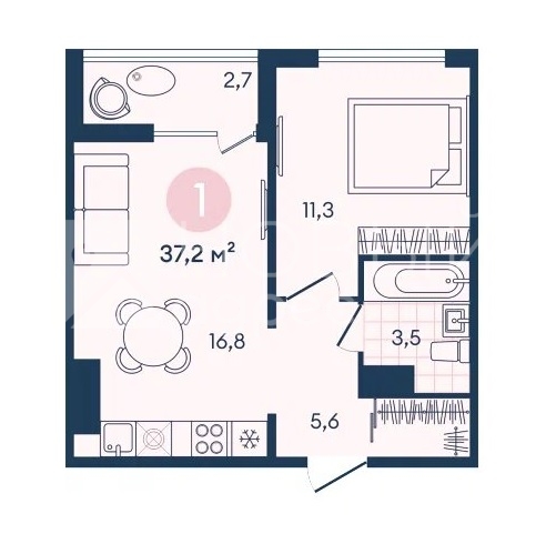 В продаже остались однокомнатные квартиры от 33,7 кв.м до 37,2 кв.м