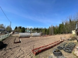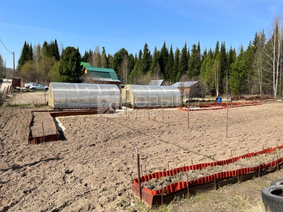 На участке есть две теплицы 3х6 из поликарбоната (посажены: помидоры, огурцы, перцы), несколько теплых грядок (посажены кабачки, морковь, свекла, редиска, салат, редька, кольраби, укроп, лук, горох, бобы), погреб для хранения картофеля под навесом из металлопрофиля, туалет, есть электричество, скважина, емкость для воды с электрическим насосом. Каждую весну собираем поливальную систему по всему огороду: в теплицы, теплые грядки, в баню, летом подключаем стиральную машину автомат. Есть самодельные: мангал, барбекю, коптильня. На участке посажены: смородина - черная, красная, белая; крыжовник, малина, жимолость, ирга, красная черемуха, облепиха, калина, сирень, яблоня, клубника - 9 грядок, все плодоносит.